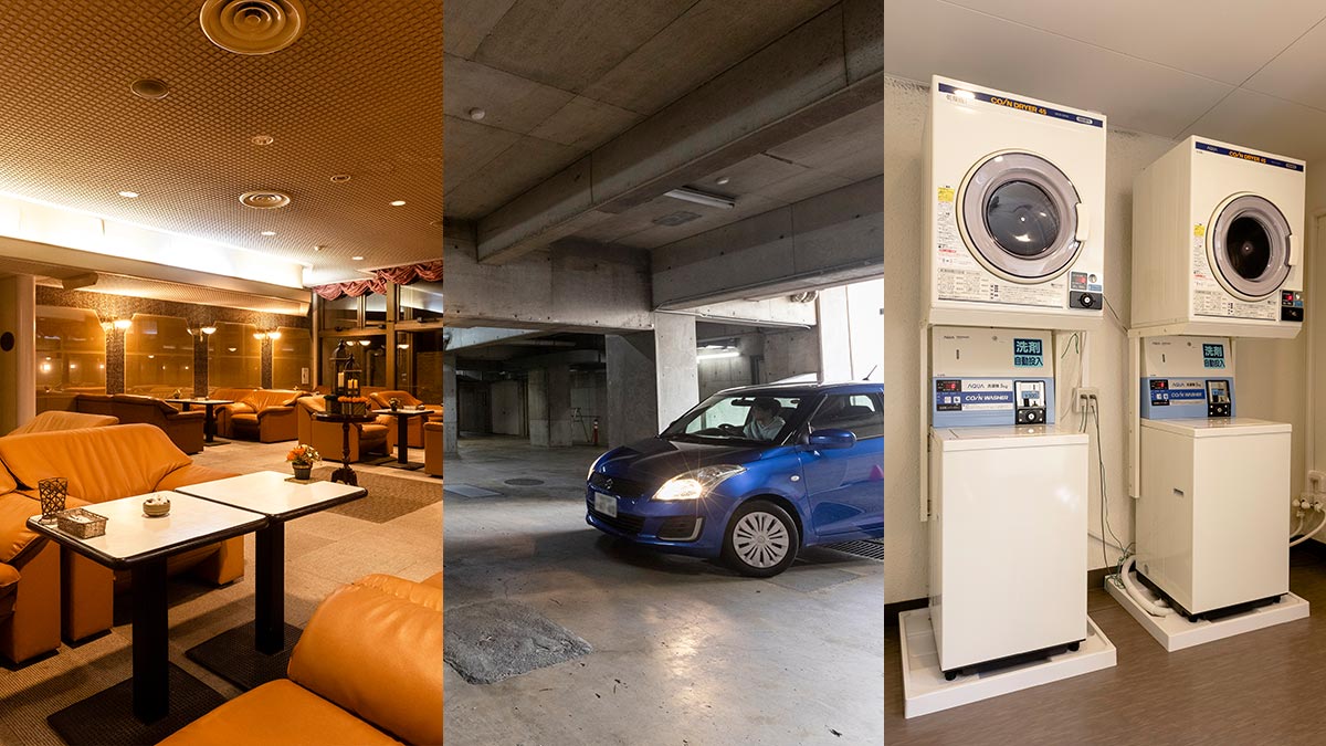 フロントサービスをはじめ、コインランドリー・無料駐車場など、安心してお過ごしいただける環境を整えています。