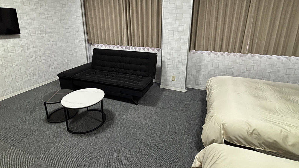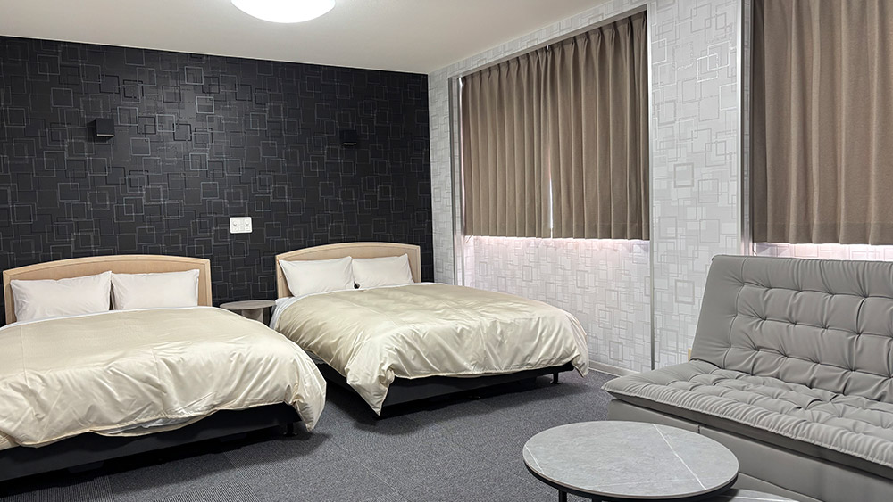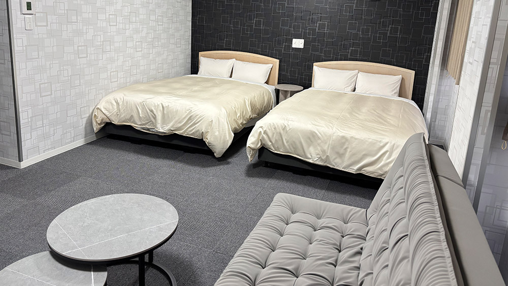 36m²の広さを備えたデラックスツインルーム。 120cm幅ベッド2台に加えてソファベッドなどをご用意し、最大6名様までご利用いただけます。ゆとりある空間で、ご家族やグループでも快適にお過ごしいただけます。