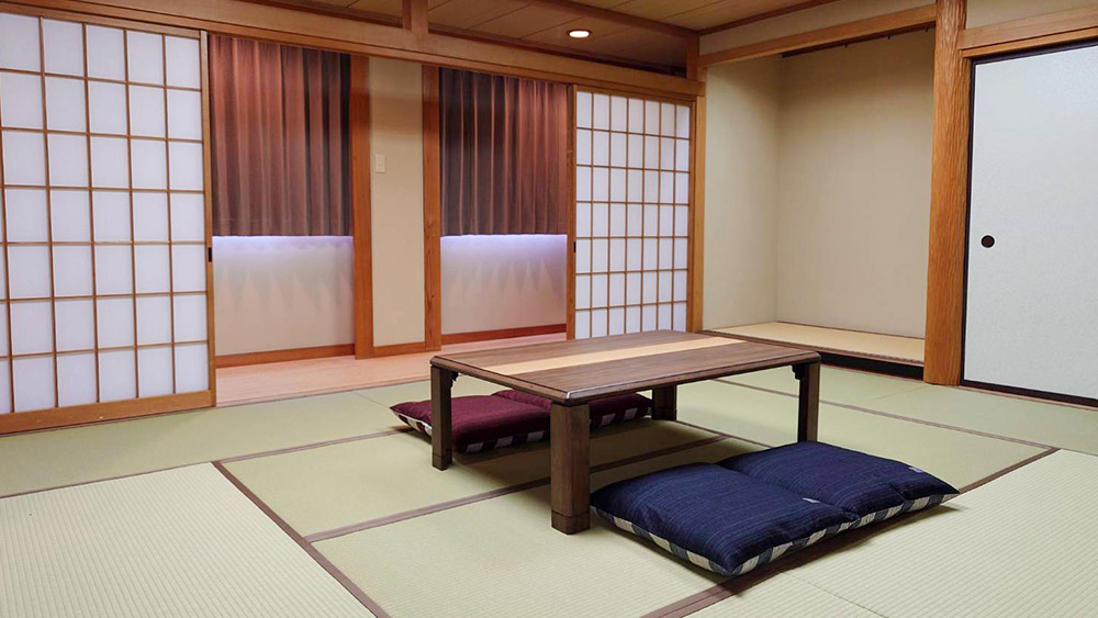 ゆったりとした47m²の和室で、1名様から5名様までご利用いただけます。バス・トイレ・洗面台がそれぞれ独立したセパレートタイプで、快適にお過ごしいただけます。