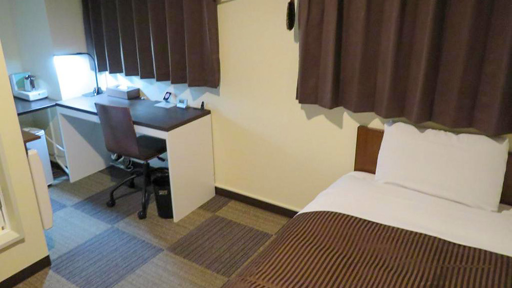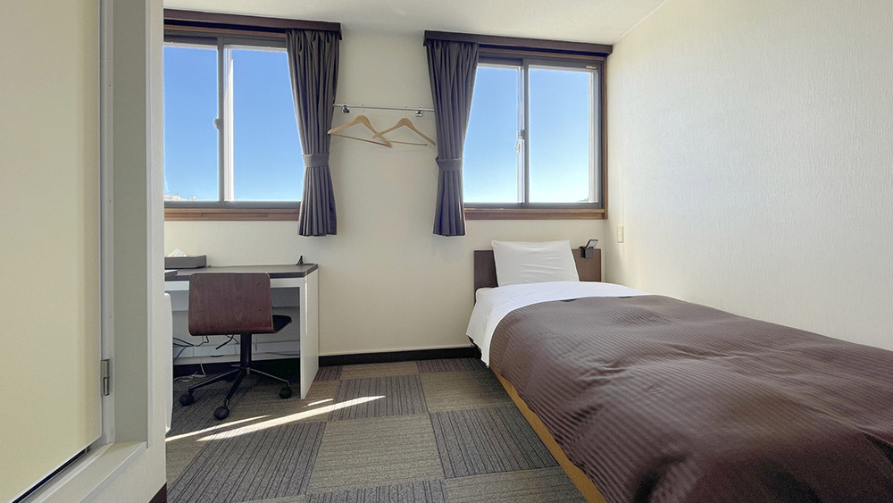 Aタイプより若干手狭のシングルルームです。バス・トイレが付いていないお部屋のため、共用トイレおよび大浴場をご利用いただきます。