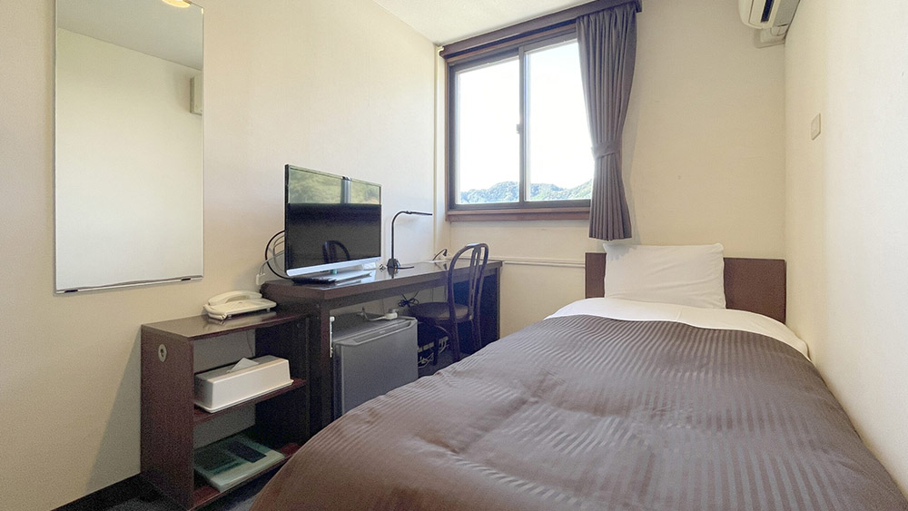 コンパクトでリーズナブルにご利用いただけるシングルルーム。バス・トイレが付いていないお部屋のため、共用トイレおよび大浴場をご利用いただきます。