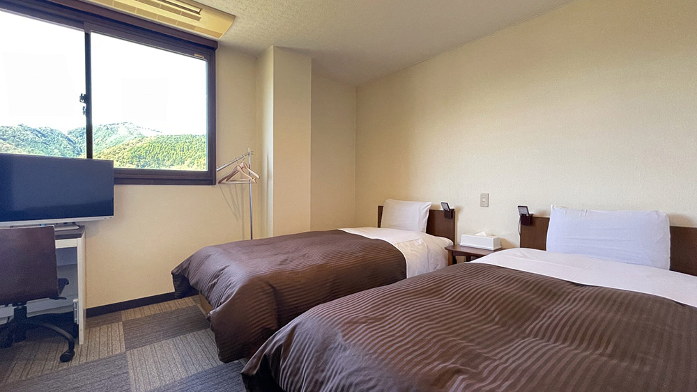 バス・トイレ付きのツインルーム。眺望の良い6Fフロアです。周辺に高い建物がないので釜石市を一望できます。