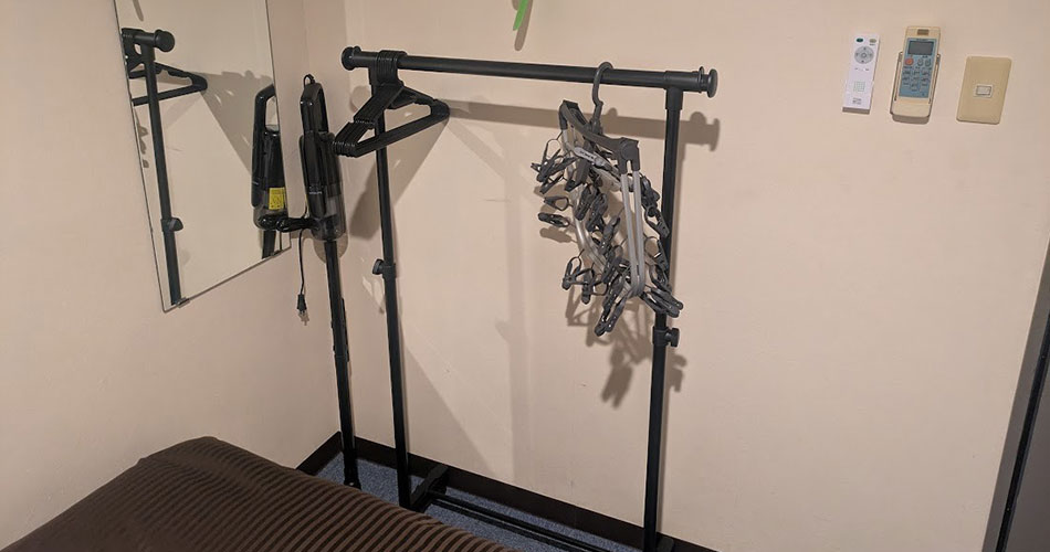 | 貸出し品 | アイロン、ズボンプレッサー、消臭スプレー、洋服ハンガー、充電器、毛布、裁縫道具、体温計、ドライヤー類、つめきり、割り箸など |