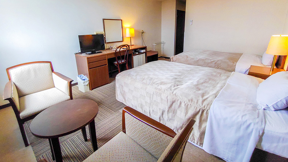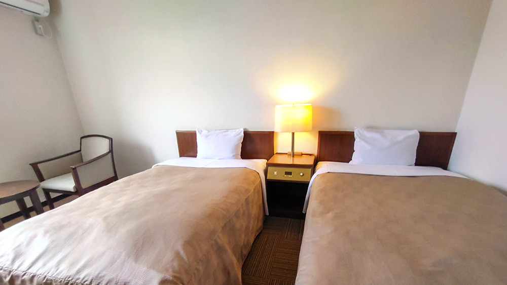 ご友人やご家族でのご宿泊に最適な洋室ツインルーム。バス・トイレ付きで快適な滞在をお約束します。広さ約17m²のゆったり空間で、長旅の疲れもゆっくりと癒していただけます。