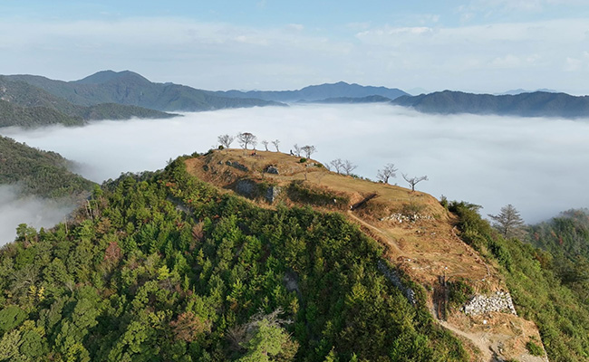 - 兵庫県丹波市にある山城の跡で、戦国時代に赤井直正が築いた名城です。標高356mの山頂にあり、「丹波の赤鬼」と称された直正の居城として知られます。山頂からの眺望は素晴らしく、特に朝霧に包まれる「天空の城」として人気のスポットです。