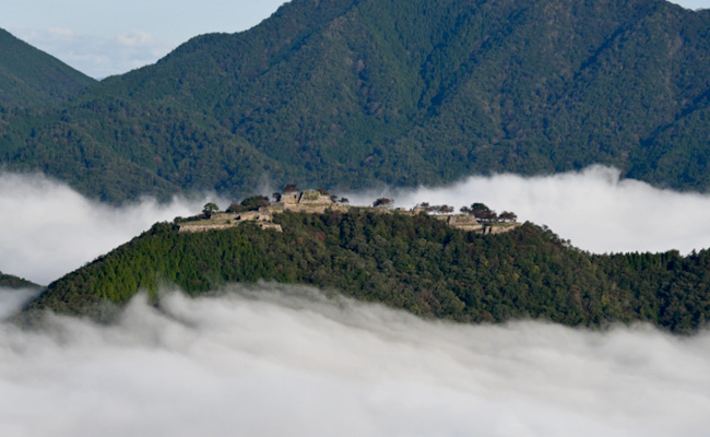 - 「天空の城」や「日本のマチュピチュ」と称される絶景スポットです。山頂に築かれた石垣が今も残り、秋から冬にかけて雲海に包まれる幻想的な光景が楽しめます。かつての要塞としての風格を感じさせる壮大な造りと、四季折々の美しい風景が魅力。