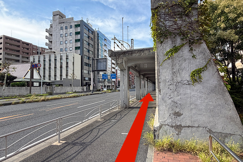 分かりやすいルートですが、南改札より少し距離があり、登り坂もあります。