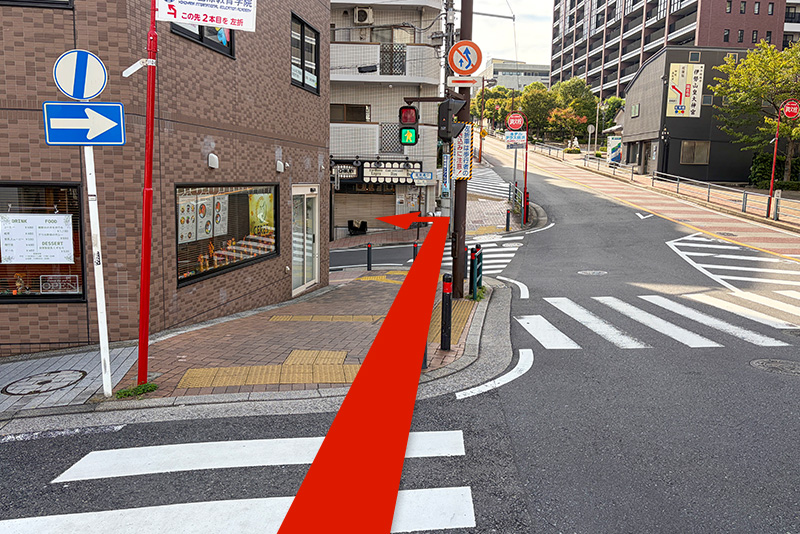 ⑤ 横断歩道を2つ渡り左へ曲がります。