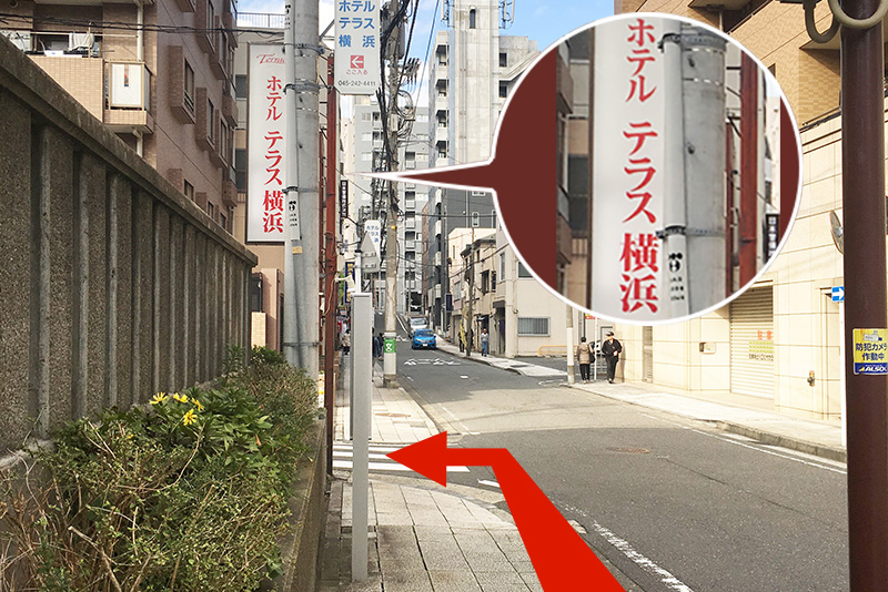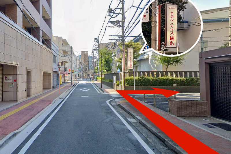 ⑦ ホテルの看板が見えたら右に曲がると到着です。