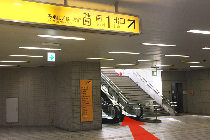 ③ 突き当たり右側の「南1番出口」エスカレーターを上ります。