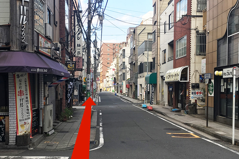 ⑥ 「音楽通り」を道なりに約100m直進します。