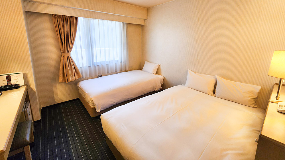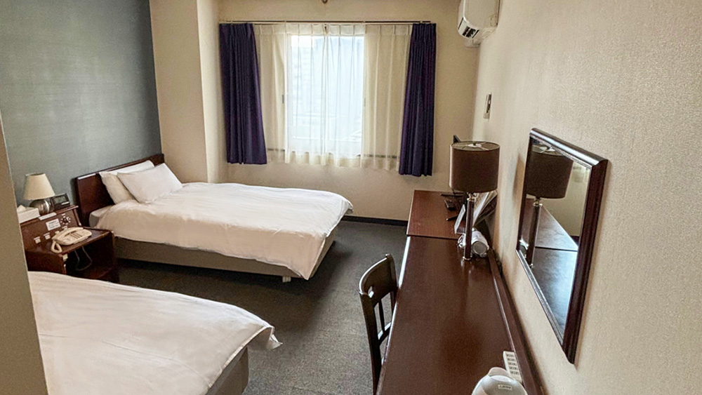 100cm幅のベッド2台。ゆったり広々として落ち着いた雰囲気のお部屋です。