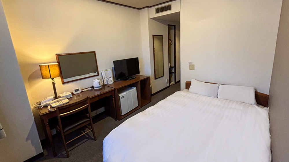 機能的な空間に加え、140cm幅のダブルベッドでゆったりとお寛ぎいただけます。