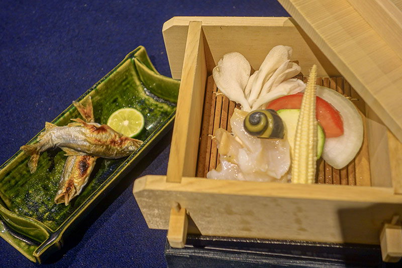 庄川鮎の塩焼きをはじめ、季節のせいろ蒸しや富山の地酒とのペアリングをご用意しております。