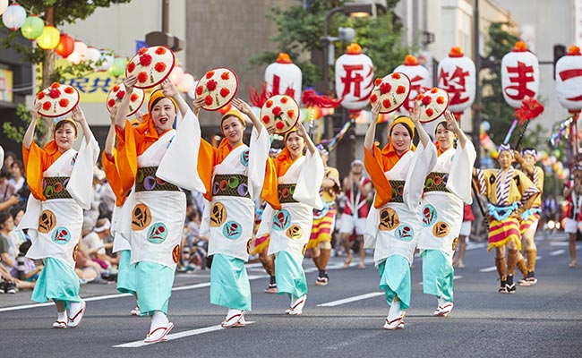 - 東北4大祭りの1つといわれ、フラワーハットダンスとして有名な山形花笠まつり。「ヤッショ、マカショ」の掛け声と共に、踊り手が市内目抜き通りをパレードします。飛び入り参加も可能なので、ぜひ一緒に祭りを盛り上げてください。