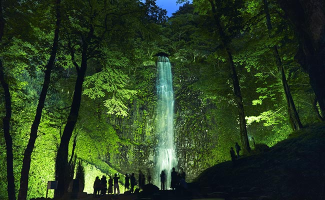 玉簾 の滝- 玉簾の滝は、約1200年前に弘法大師(空海)が神のお告げにより発見、命名したと伝えられています。落差63メートル幅5メートルにわたり、絶壁から豪快に流れ落ちるさまは壮観です。寒さが厳しい季節には、氷瀑となります。