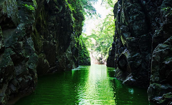 - ながい百秋湖(長井ダム)にある「三淵渓谷」。ボートでしか見ることができない神秘的な空間を1時間かけて巡ります。パワースポットとしても人気を集めています。