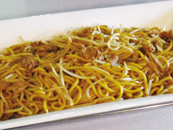 - ウドンのように極太の麺が特徴で、うまみたっぷり濃厚ソース、豚肉とモヤシの具が入った食べごたえのある一品です。 ホテルで再現した「なみえ焼きそば」をぜひ、お召し上がりください。