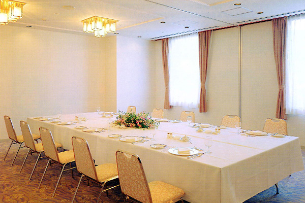 24名様までのご宴会にご利用いただける小宴会場です。お仕事でのミーティングやスクール形式での講演会、少人数でのパーティやお食事会など目的に合わせてフレキシブルに対応します。