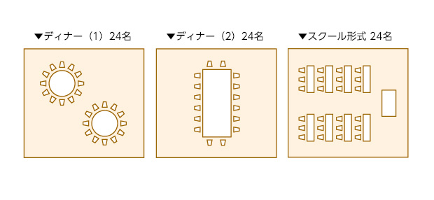 | 48m²/14.6坪 | 24名 | 24名 | 30名 |